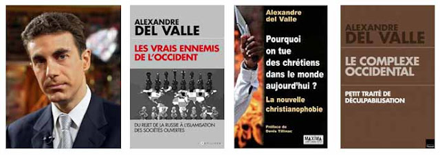 * Alexandre del Valle est un géopolitologue et essayiste franco-italien. Ancien éditorialiste (France Soir, Il Liberal, etc.), il intervient pour le groupe Sup de Co La Rochelle et des institutions patronales et européennes, et est chercheur associé au Cpfa (Center of Foreign and Political Affairs). Il a publié plusieurs essais en France et en Italie sur la faiblesse des démocraties, les guerres balkaniques, l'islamisme, la Turquie , la persécution des chrétiens, la Syrie et le terrorisme.