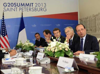 Ci-dessous - Le Groupe des Vingt (G-20) lors de leur Réunion de 2013 à St. Pétersbourg en Russie les 5 et 6 septembre, dont l’hôte était Vladimir Poutine, Président de la Fédération de Russie
