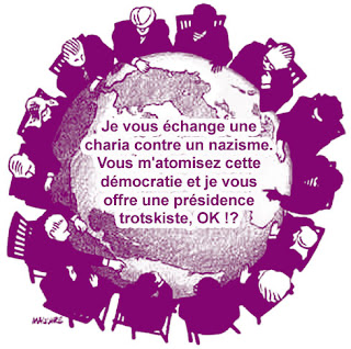 La BCE, la Commission Européenne et tous les responsables de la Troïka sont en train de déclencher l’émergence du fascisme en Grèce et en Europe, en humiliant le peuple grec. Rappelons que l’Union européenne et le Congrès américain ont soutenu et financé les nazis en Ukraine chargés de lutter contre les pro-russes. La Troïka et les institutions bancaires internationales savent parfaitement s’accommoder du nazisme ou de la charia qui servent de réserve de chair à canon en cas de conflit. Le gouvernement de Kiev en est la plus parfaite illustration. La dette ukrainienne a d’ailleurs été allégée quand les nazis ont intégré le pouvoir. Il en a été de même quand la charia fut instaurée dans certains pays musulmans.